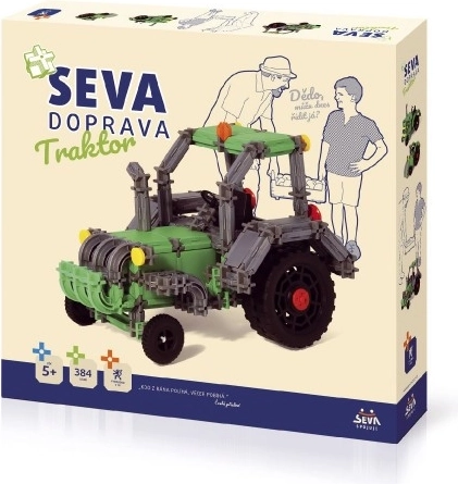 SEVA Транспорт - Трактор е уникален конструктор, който позволява на децата да развиват своята креативност и сръчност още от ранна възраст. Този комплект съдържа общо 384 части, които могат да се комбинират в различни тракторни модели.