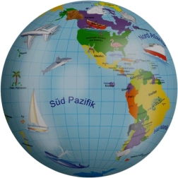 Практичната възможност за допомпване гарантира, че лесно ще поддържате правилната твърдост на топката. Достатъчна е обикновена велосипедна помпа или компресор (не са включени в комплекта). Атрактивният мотив с глобус стимулира любопитството и прави топката любим спътник за игри навън и във вода.