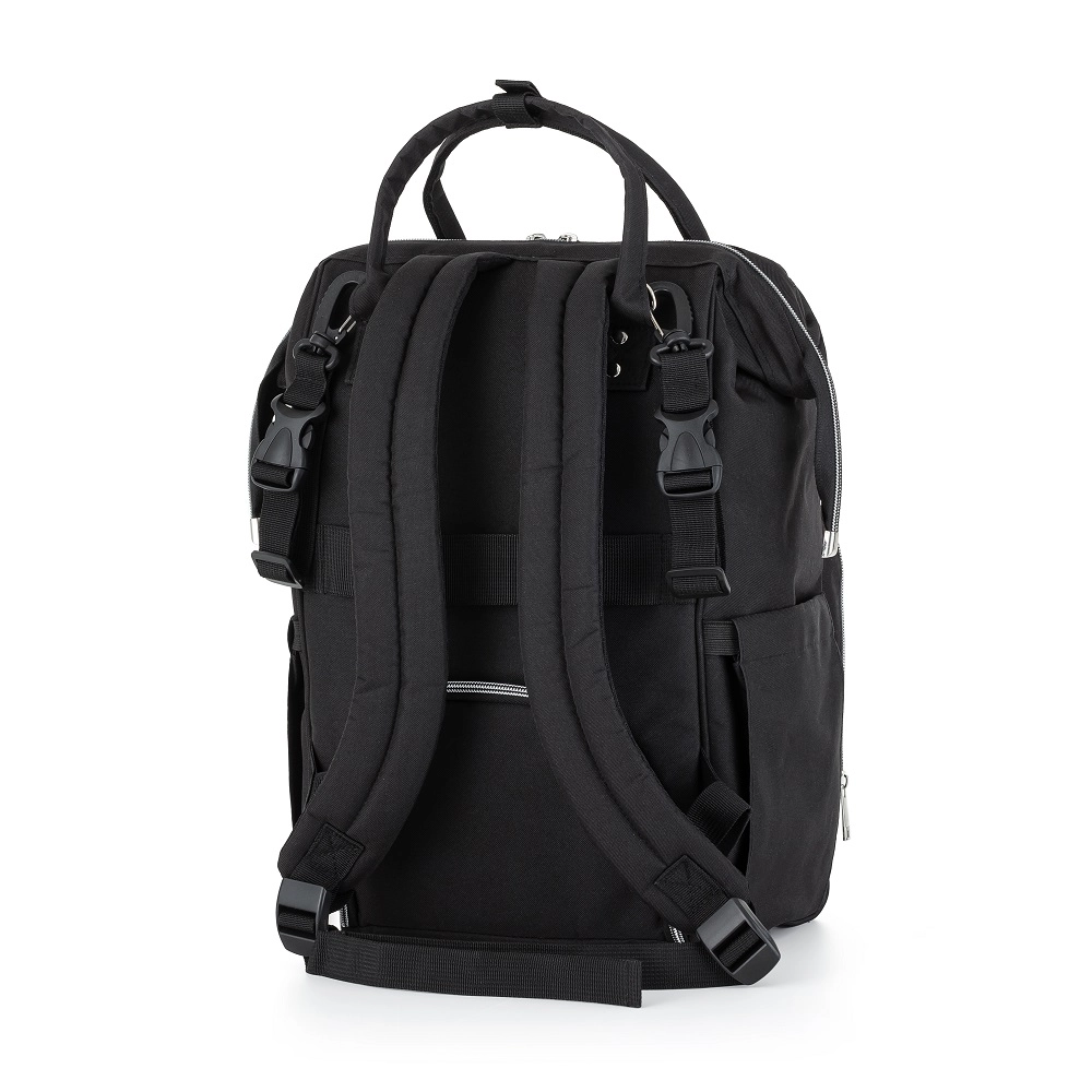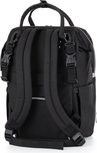 Насладете се на премислените детайли: два термо джоба поддържат шишетата в правилната температура, водонепромокаем джоб надеждно отделя мокрите вещи, връзка за ключове ускорява намирането им, а задният цип осигурява светкавичен достъп до основното отделение. Раницата лесно се прикрепя към количка или към дръжката на куфар и благодарение на светлата подплата винаги бързо намирате това, което търсите.