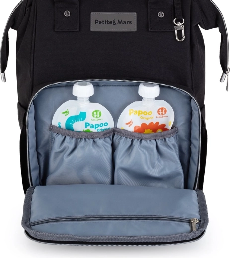 Стилна и функционална пелена раница PETITE&MARS Jack в цвят Just Black – майстор на организацията за ежедневни излизания с бебето. Предлага просторно вътрешно пространство, 11 джоба, включително термо джобове, водонепромокаеми джобове за мокри вещи и бърз достъп чрез страничен и заден цип. Включва постелка за повиване и ремъци за количка, тегло само 800 g и издръжлива изработка за лесна поддръжка.