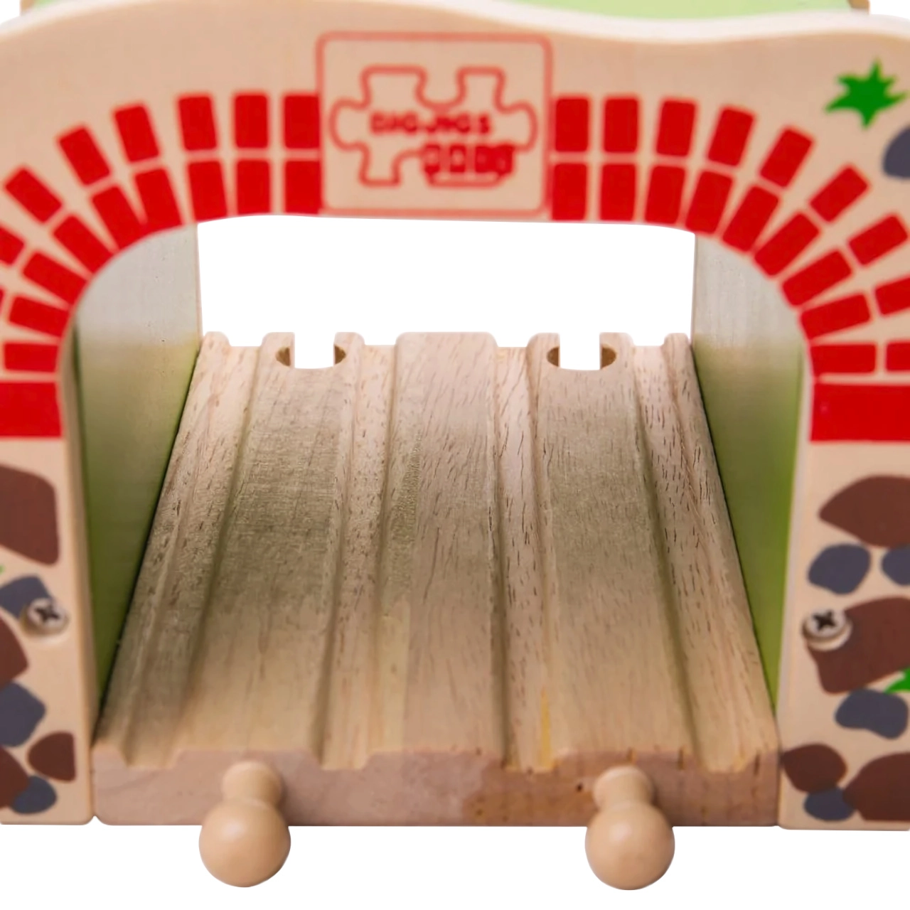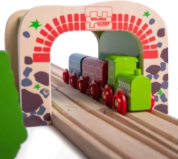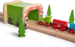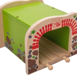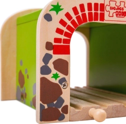 Дървеният двоен тунел BIGJIGS RAIL внася повече действие и по-плавно движение в света на дървените железници. Благодарение на двурелсовото преминаване едновременно могат да минават два влакчета, което насърчава съвместната игра и развитието на координацията. Здравата конструкция и атрактивният мотив на тухли и камък придават реалистичен вид на трасето.