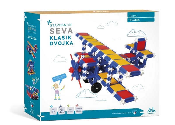 Конструкторът SEVA Classic двойка е креативен политехнически конструктор за деца от 4 години, който благодарение на металните осички позволява да се строят подвижни модели – радар, въртележка и други. Развива фината моторика и въображението, съвместим е с всички сетове SEVA, без фталати и е произведен в Чехия по стандарта EN 71.