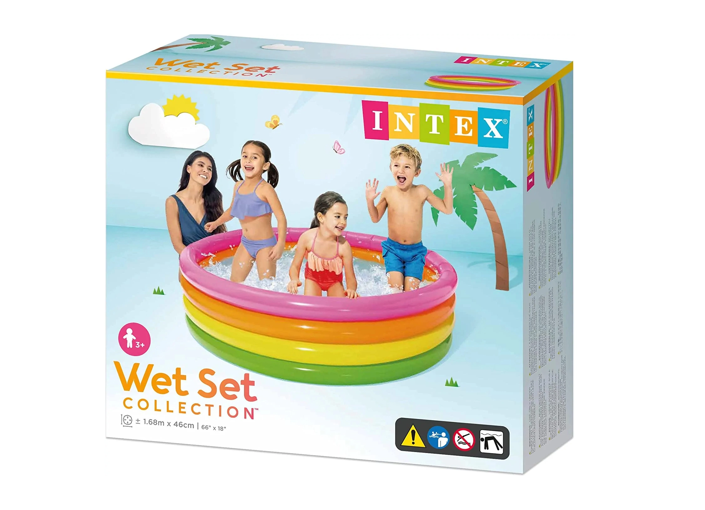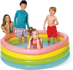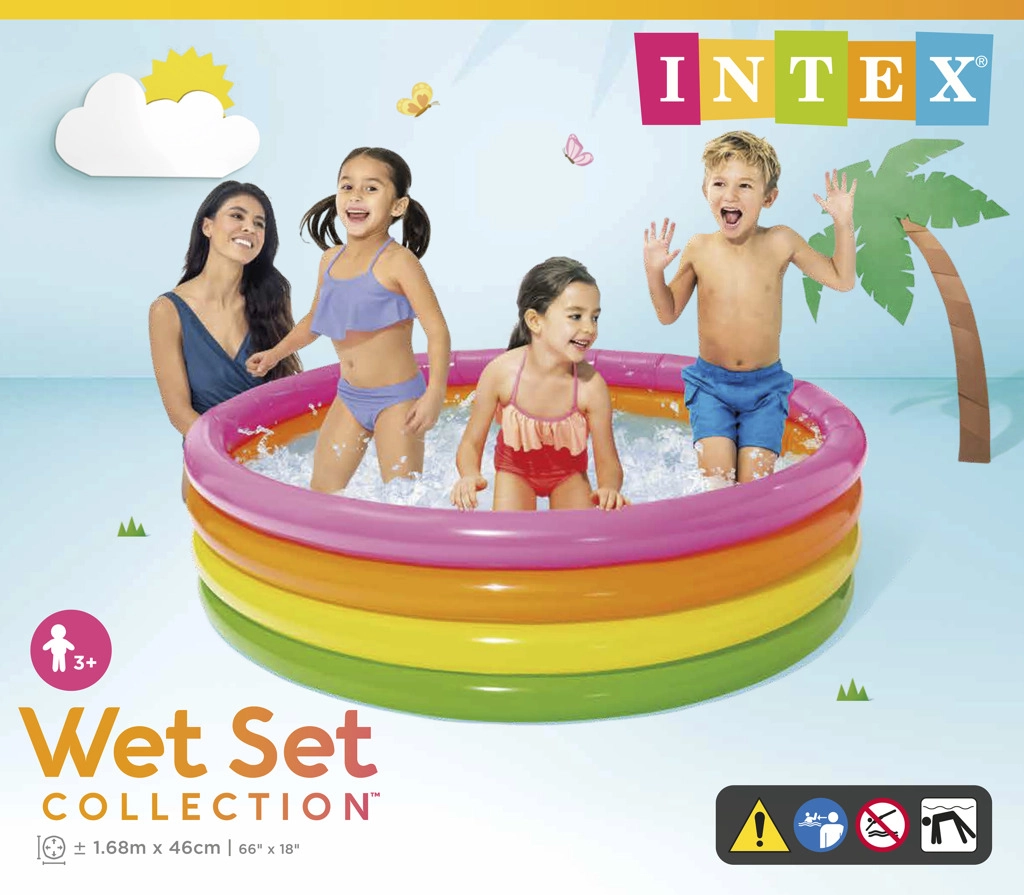 Насладете се на лятото с този шарен надуваем детски басейн INTEX с размери 168 × 46 cm. Благодарение на четирите стабилни ринга е здрав и удобен, готов за пълнене до 10 минути. Идеален за по-малки дворове, предлага освежаване и много забавление за децата с обем 780 l.
