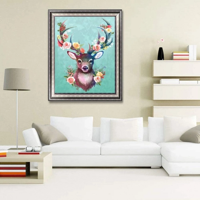 Създайте собствена блестяща картина с мотив на величествения елен. Платното с детайлен печат и самозалепващ слой ви води стъпка по стъпка с помощта на символи и номера. Комплектът е подходящ за начинаещи и напреднали и предлага часове успокояващо творчество.