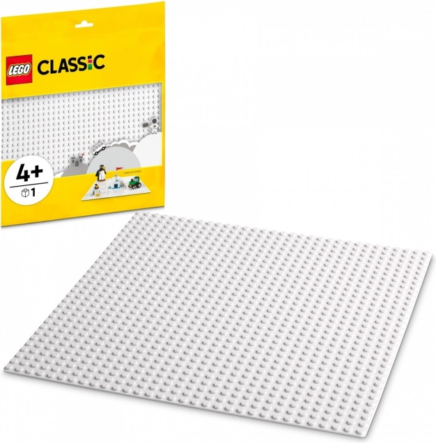 Основната плоча LEGO Classic позволява свободна игра, изпълнена с креативност и въображение. Тази голяма бяла плоча с размери 25 cm × 25 cm и разпределение 32 × 32 пина е перфектната основа за строеж на пейзажи, играчки и други конструкции, които децата могат да измислят. С нейната помощ могат да творят от замръзнали езера до слънчеви планински върхове.