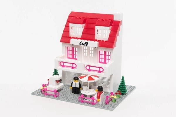 Постройте своя собствена сладкарница от кубчета CHEVA с балкон и външна зона за сядане. Комплектът предлага 215 елемента в практична кофа, ясен наръчник и фигурки на сервитьор и клиентка. Идеален за креативна игра и развитие на фантазията на деца от 6 години.