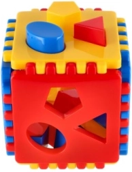 Пъстър куб за вграждане с отделящи се стени, който подпомага фината моторика, разпознаването на форми и търпението. Благодарение на здравата пластмаса и заоблените ръбове е безопасен за деца от 6 месеца. Кубът може лесно да се разглобява и сглобява отново, което предлага повече начини за игра и учене.