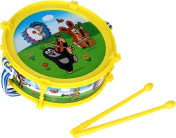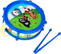 Популярният детски мотив с КЪРТЕКА съчетава забавление и учене. Лекият пластмасов барабан с диаметър 20 cm се държи лесно и благодарение на включените палки детето може да започне да свири веднага. Презрамката позволява свирене в изправено положение и по време на разходка, което прави барабана чудесен спътник у дома и навън.
