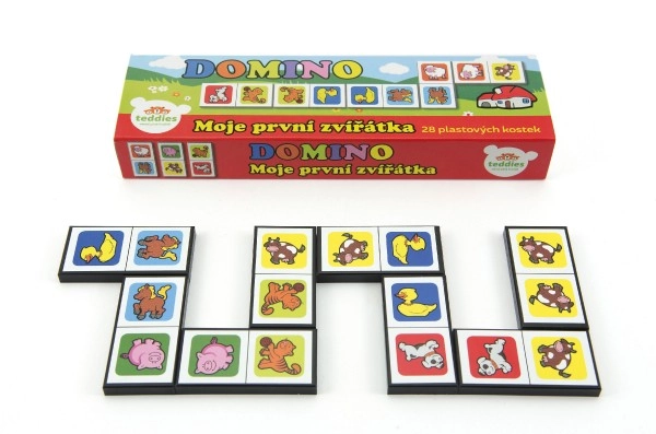 Забавно и поучително домино с животни за най-малките, които още не броят. Съдържа 28 издръжливи пластмасови карти с картинки на животни в компактна кутия 21 × 6 × 3 cm. Чудесно за развитие на вниманието, паметта и фината моторика и за първи общи игри с родителите.