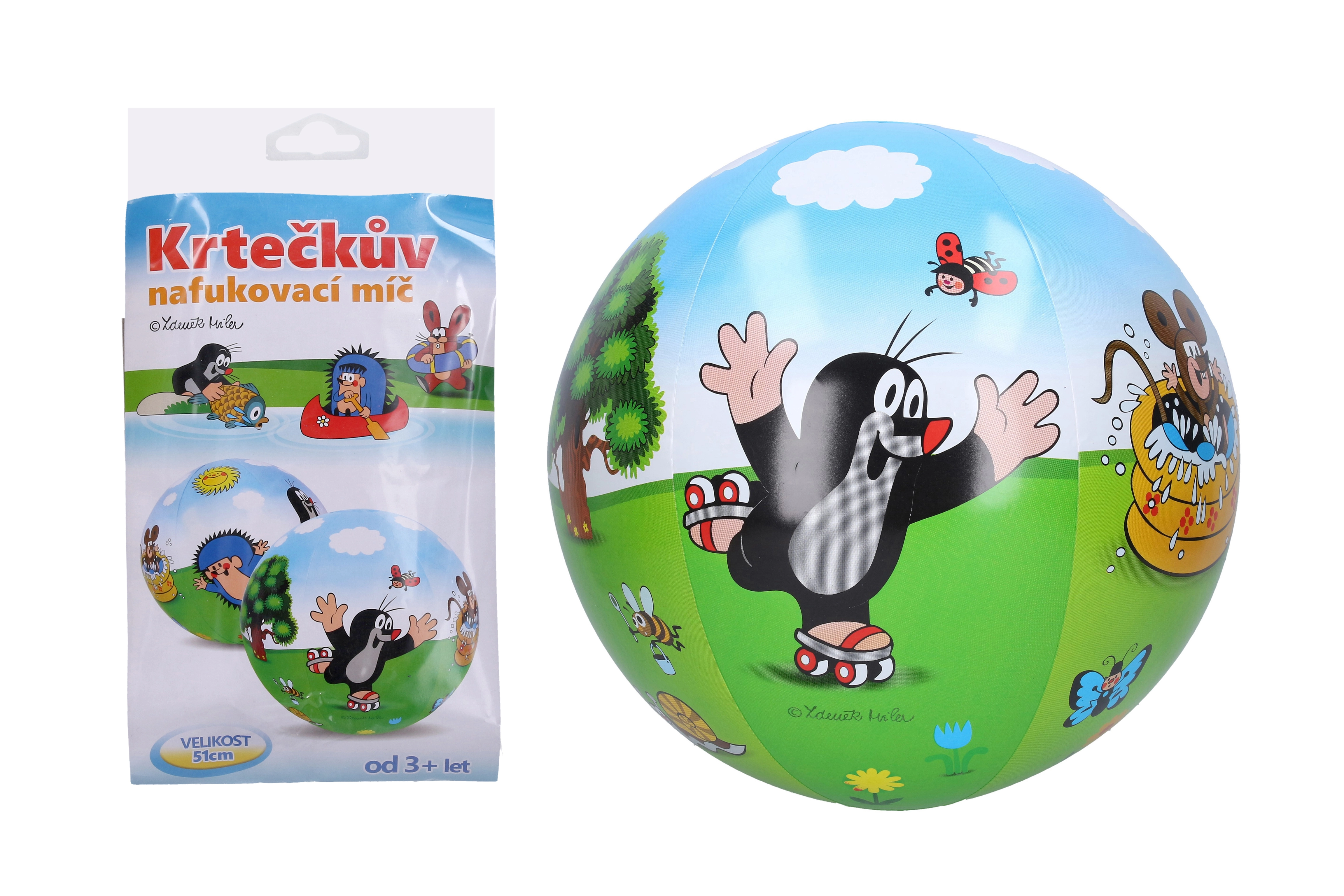 Веселата надуваема топка с мотив на Къртичето и неговите приятели ще осигури часове забавление във водата и на сушата. Благодарение на диаметъра от 51 см е добре видима и лесна за хващане, така че ще се хареса както на по-малки, така и на по-големи деца.