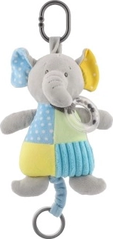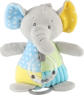 Перфектен игрален спътник за кошара или количка благодарение на безопасната щипка, която позволява лесно закачане. Текстурираната повърхност на слончето насърчава тактилното изследване, а цветният дизайн привлича вниманието на детето.