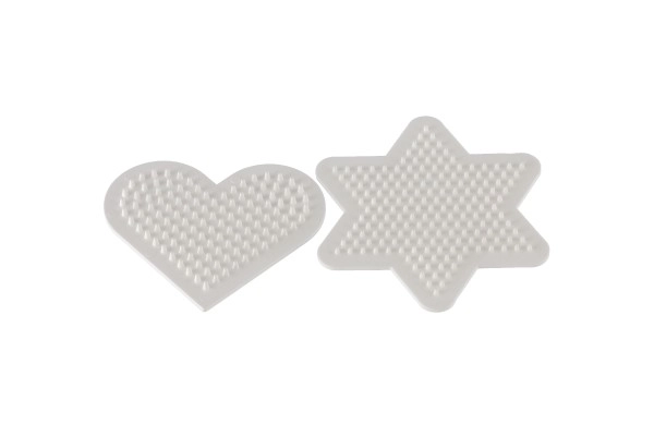 Комплект от две подложки за термозалепващи мъниста HAMA MIDI във форма на звезда и сърце, идеален за развитие на детското творчество. Здравата пластмаса осигурява стабилност при подреждане на мънистата, а прецизните пинове помагат за създаване на красиви мотиви. Прекрасно средство за развитие на фината моторика, търпението и разпознаването на форми и цветове.