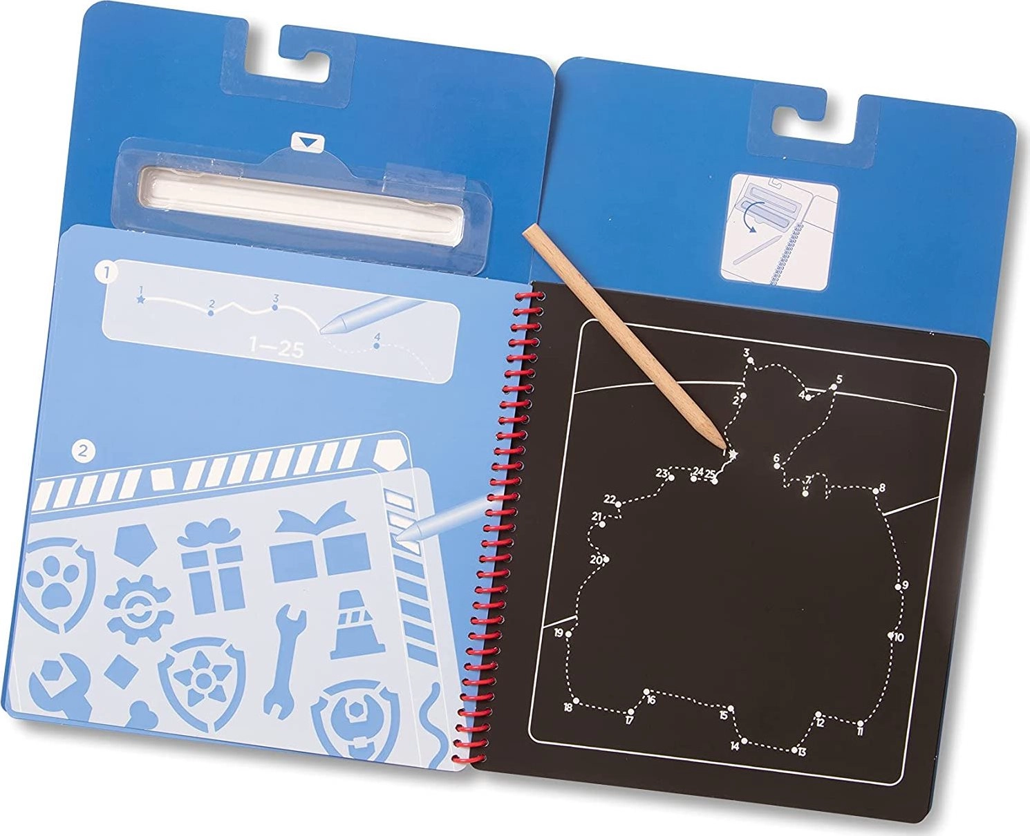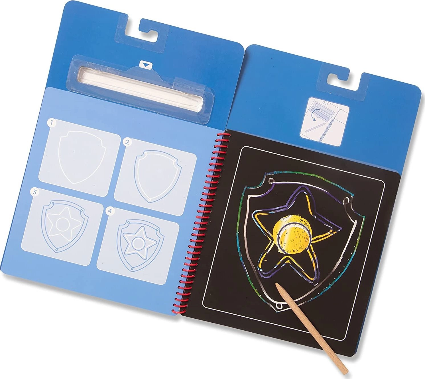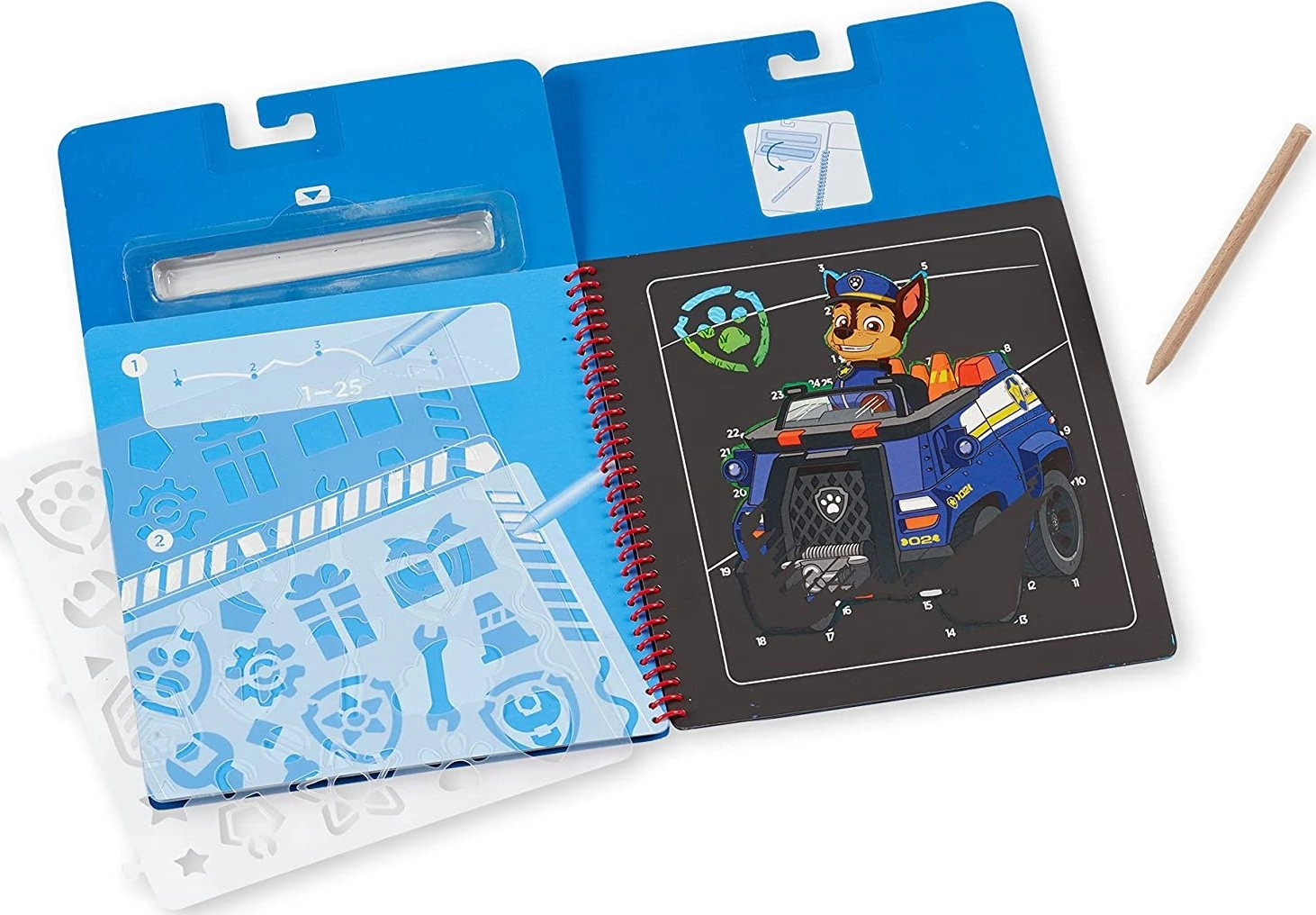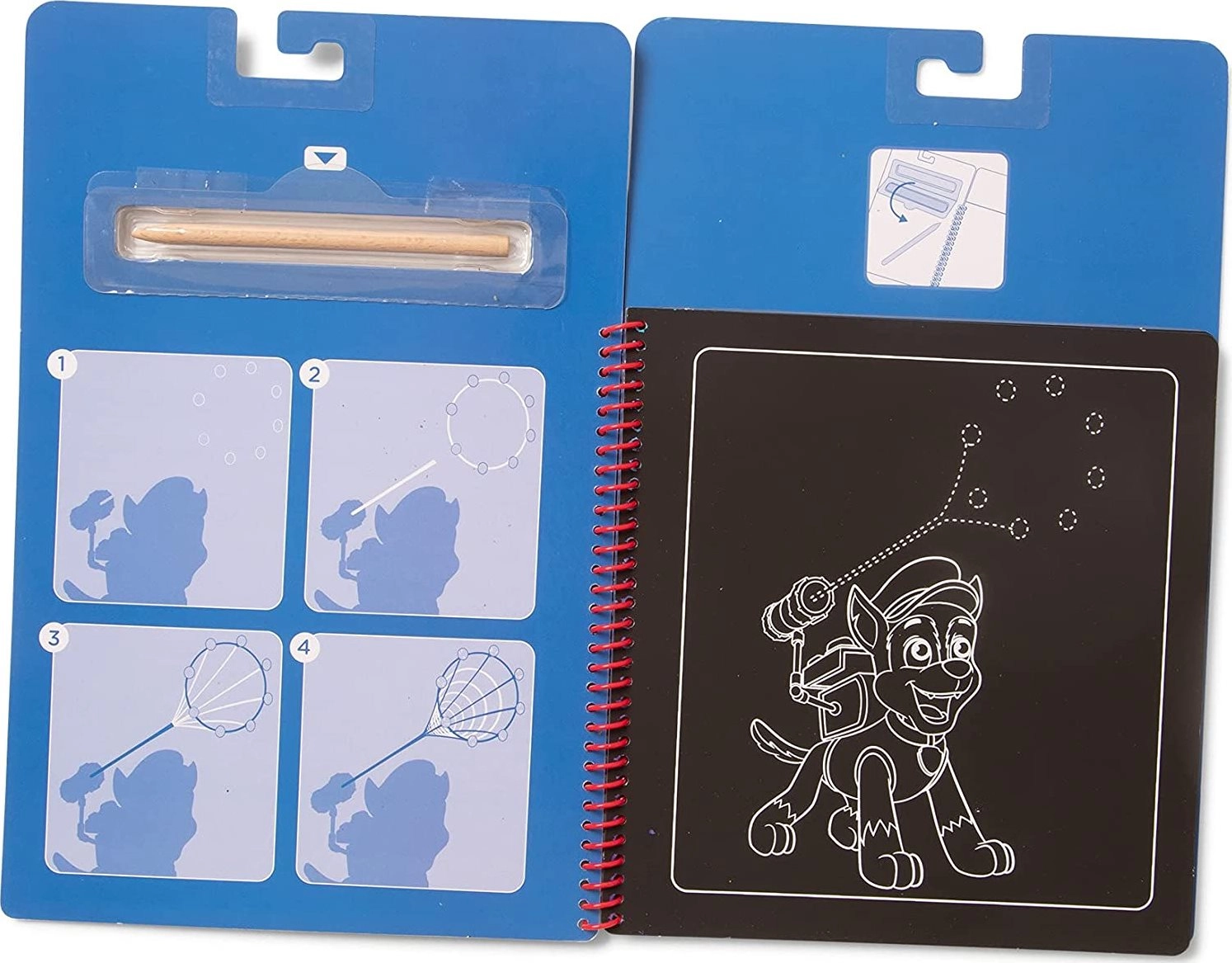 Подкрепете детското въображение с практичния надраскващ блок с любимия герой Чейс от Пес патрул. Твърдите корици и здравата спирала осигуряват удобно използване и лесно прелистване, което го прави идеален за у дома, за училище и за пътуване с кола, влак или самолет.