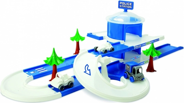 Забавната полицейска станция Wader Play Tracks City носи на децата от 1 година динамични пътувания по многонивоова писта с дължина 3,8 м. Комплектът включва двуетажна станция, 3 полицейски колички Kid Cars (полицейски автомобил, ван, джип) и декорации със стикери. Благодарение на лесния монтаж и безопасната, устойчива пластмаса развива фантазията и фината моторика и е страхотен подарък.