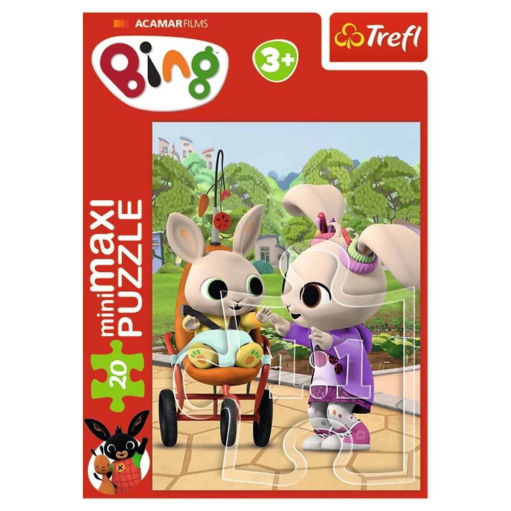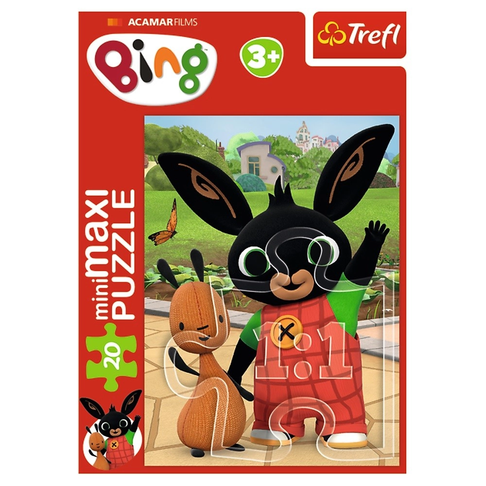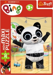 Открийте забавен детски пъзел с мотиви от любимия сериал BING. Предлага 4 различни мотива и съдържа 20 макси части, които се подреждат лесно от децата. Подпомага фината моторика, търпението и логическото мислене. Размерът на подредената картина е 16 × 22 cm, идеален за малки ръчички. Подходящ за деца от 3 години.