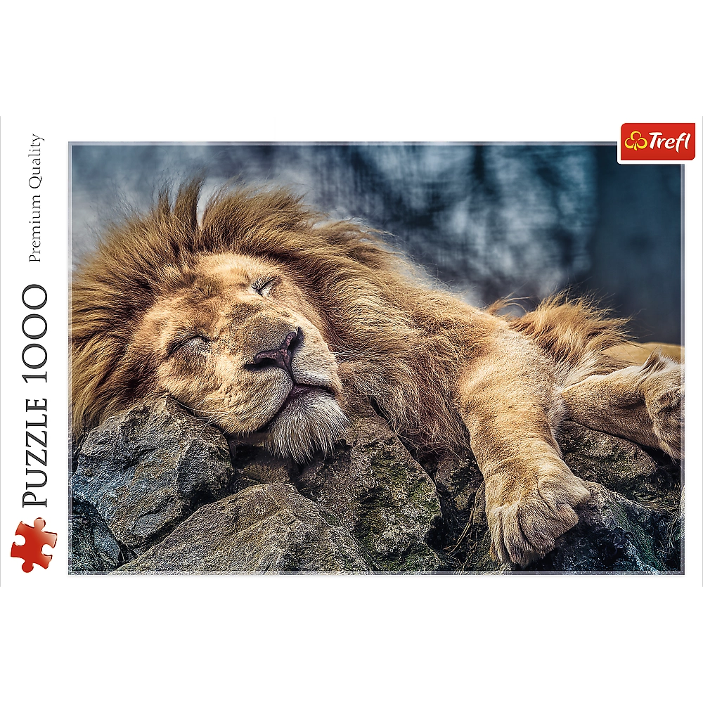 Пъзелът с мотив на спящ лъв е предизвикателство за всички любители на подреждането. Съдържа общо 1000 части, които след сглобяване създават прекрасна картина с размери 68x48 cm. Изработен е от висококачествена каландрирана хартия, която не само отразява светлината, но и гарантира безопасност при подреждане благодарение на използването на екологични хранителни бои.