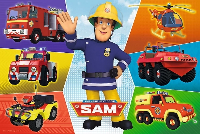 Сглобете цветна картина с мотива Пожарникар Сам и неговите спасителни превозни средства. Този висококачествен пъзел от 100 части от марката Trefl е идеален за деца от 5 години, развива логическото мислене, паметта и търпението и след подреждане образува картина с размери 410 × 275 мм.