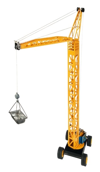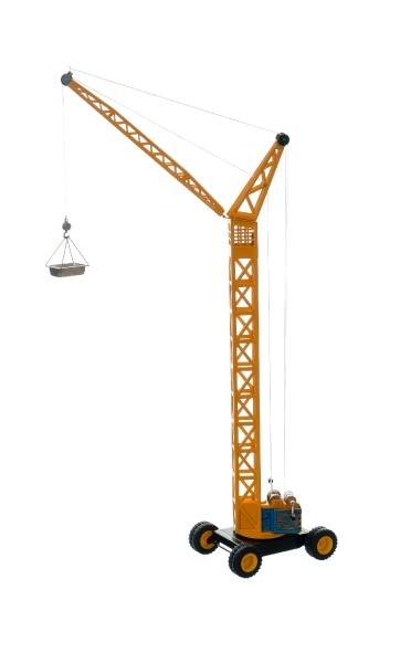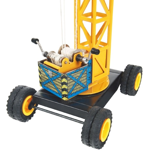 Кранът е оборудван с кула, която може да се върти, плъзгащо се рамо и система за повдигане на товари. Особено ще ви зарадва ръчната манивела, която позволява на децата да тренират моторни умения и координация на движенията. Дължината на рамото е 25 cm, а целият кран е висок 50 cm.