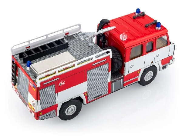 Детайлно изработената каросерия, предупредителните светлини и страничните шкафове придават на модела автентичния вид на истински пожарен специален автомобил.