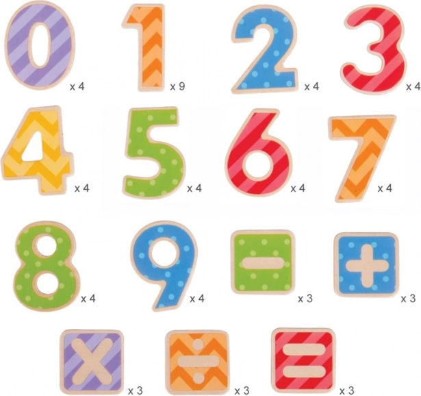 В този комплект ще намерите общо 56 елемента, включително цифрите от 0 до 9 и различни математически оператори. Магнитните цифри са идеални за използване върху дъски, което позволява на децата лесно да създават задачи и истории с цифри. Помагат за развитието на сръчността и концентрацията и са безопасни за използване.