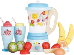 Този стилен дървен комплект от колекцията Honeybake превръща всяка детска кухня в смути бар. Децата могат безопасно да „режат“ плодовете със сух цип, да напълнят каната на миксера и да сервират вкусни напитки в две чаши със сламка. Реалистичните детайли насърчават ролевите игри, развитието на фината моторика и когнитивните умения.