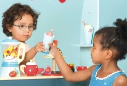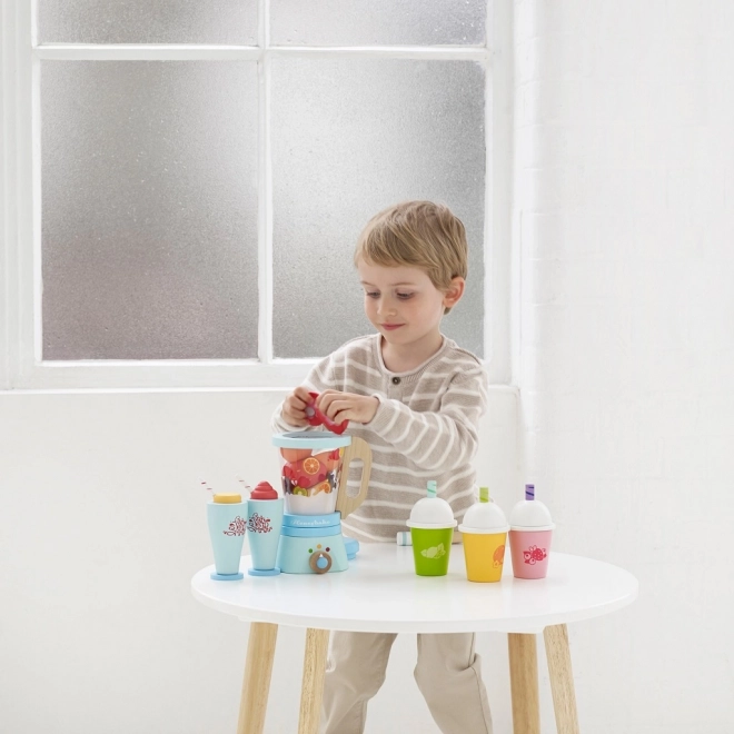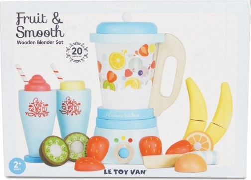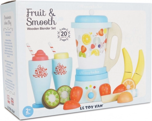 Смесете за децата здравословна порция забавление с дървения смути миксер LE TOY VAN. Комплектът включва класически миксер с подвижна кана, 6 броя плодове за рязане със сух цип, дървено ножче и 2 чаши със сламки. Изработен от FSC сертифицирана дървесина, ръчно дооцветен с нетоксични бои на водна основа и отличен за качество и игрова стойност.