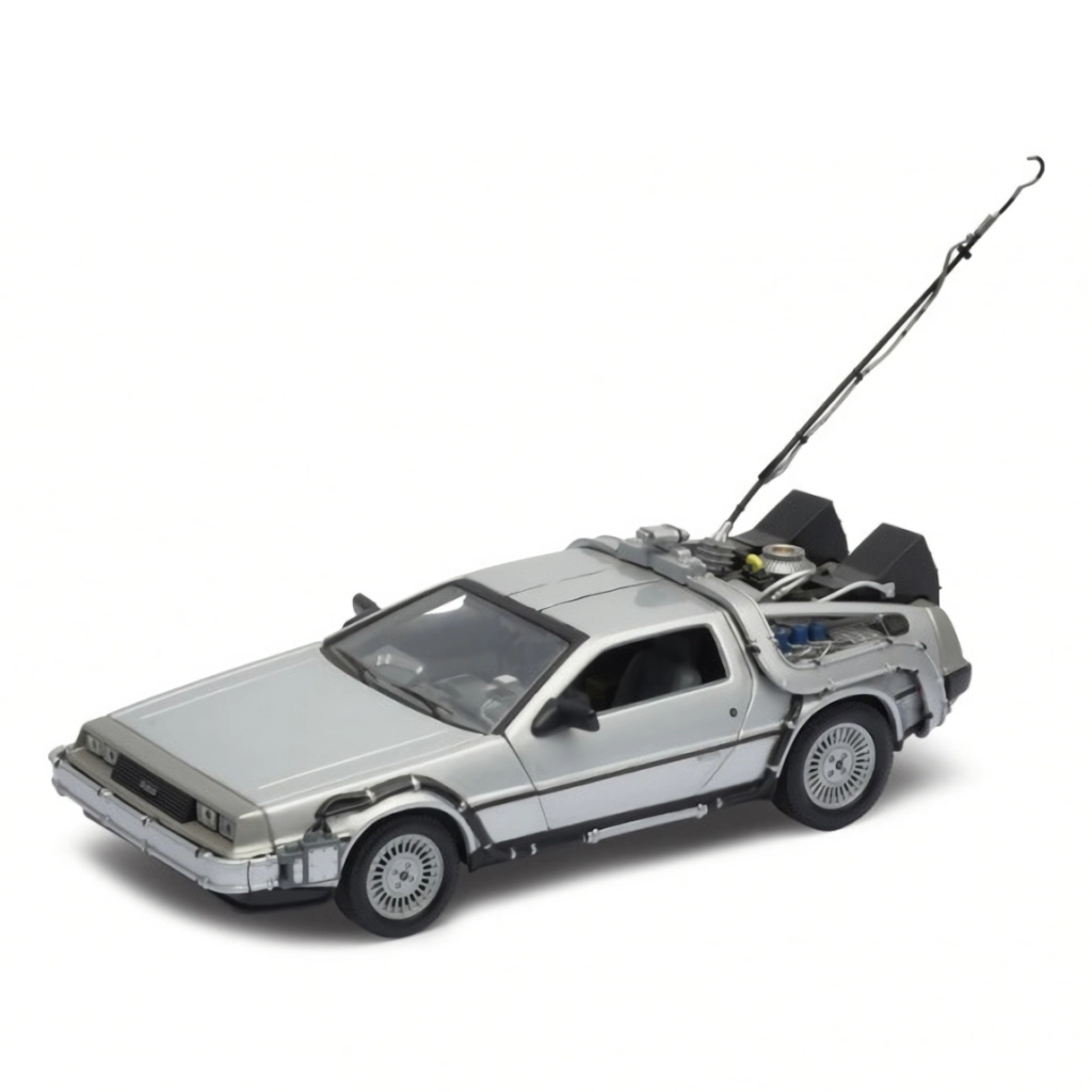 DeLorean от филма Завръщане в бъдещето в отлично детайлно изпълнение в мащаб 1:24. Този модел съчетава метална конструкция с прецизно цветно боядисване, което отговаря на оригинала.
