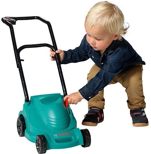 Детската косачка KLEIN BOSCH носи на децата радост от играта на градинска работа и стимулира тяхното въображение. Благодарение на леката пластмасова изработка и стабилните, подвижни колела се управлява лесно и върху различни типове повърхности. При бутане издава механичен звук, имитиращ работата на истинска косачка, така че играта е още по-реалистична – и то без нужда от батерии.