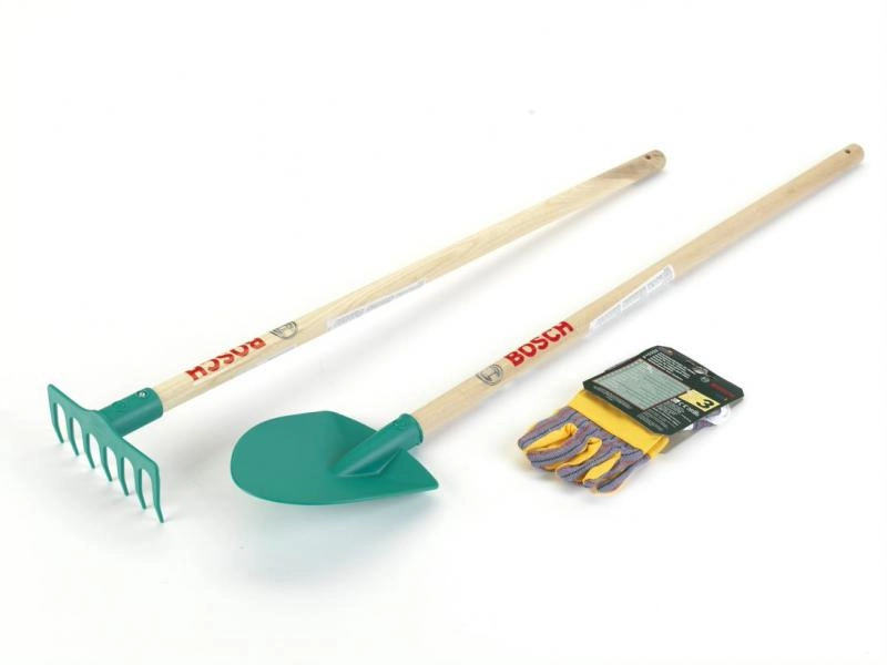 Малкият градинар ще обикне работата в градината с комплекта BOSCH. Тази играчка вярно наподобява истински инструменти и подпомага развитието на моториката, ролевата игра и движението на чист въздух. В комплекта ще откриете лопата (89 см), гребло (75 см) и детски ръкавици – идеално оборудване за малките помощници.