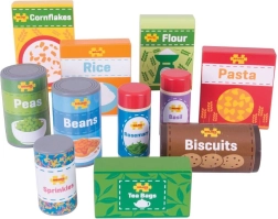Обогатете детската игра и ги научете на здравословно и балансирано хранене с помощта на този пъстър комплект дървени храни. Децата се учат откъде идва храната и как се приготвя. Комплектът е идеален за насърчаване на креативна и въображаема игра.