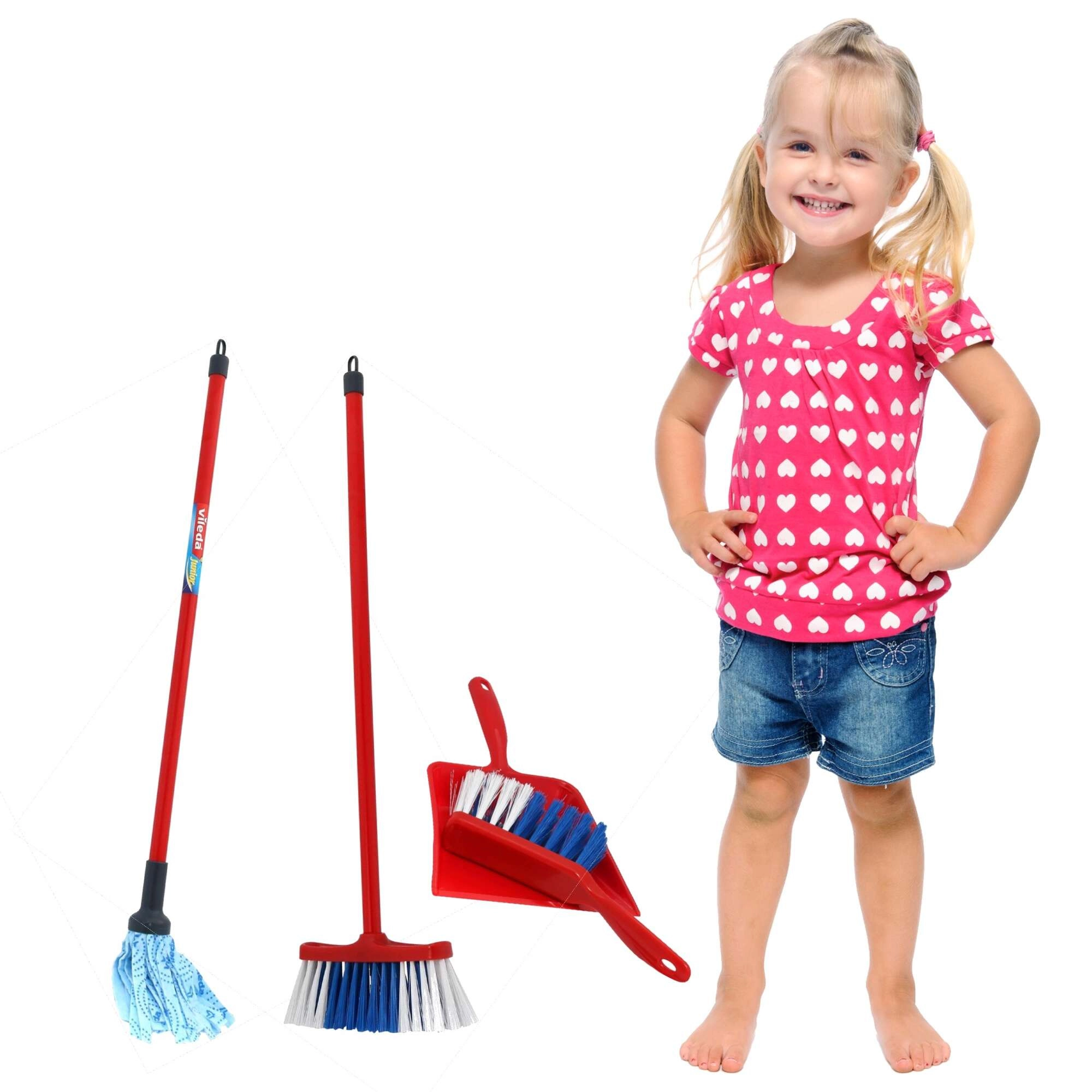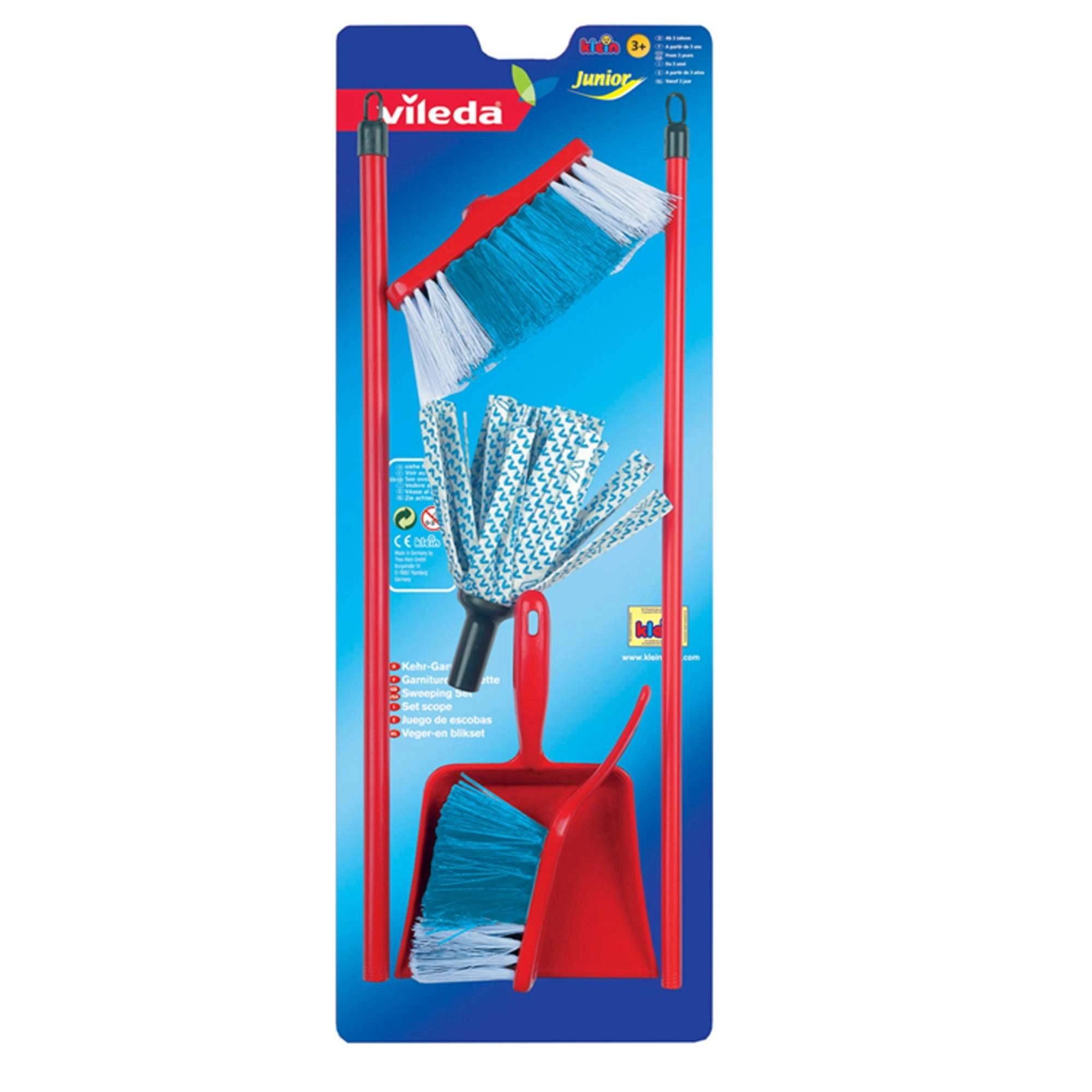 Комплектът за почистване с моп Vileda от марката KLEIN е проектиран да наподобява възможно най-вярно истинските почистващи принадлежности. Децата могат безопасно да имитират възрастните, да се включат в домашните дейности и едновременно с това да развиват фината моторика и чувството за ред. Реалистичната изработка и вниманието към детайла правят този комплект любима играчка както за момичета, така и за момчета.
