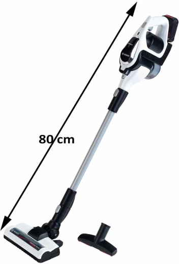 Част от комплекта са отворяем контейнер за „замърсявания“ за лесно изсипване, широка подова четка с въртящ се валяк и тесен накрайник за детайлно почистване. Пръчката може лесно да се свали и прахосмукачката да се използва като компактна ръчна единица – идеална за трохи и бързо почистване по време на игра.