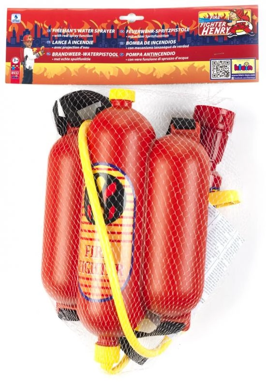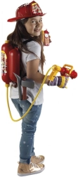 Този пожарникарски комплект е създаден за малки герои, които обичат екшън и приключения. Големият воден резервоар в типичния червен цвят с жълти детайли се носи на гърба и с помощта на маркуча и пистолета позволява на децата да „гасят пожар“ с водна струя. Благодарение на здравата конструкция и качествената пластмаса играчката е издръжлива и готова за интензивна употреба.