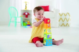 Открийте света на забавлението и ученето с Цветната сгъваема кула Fisher-Price. Тази играчка е идеална за деца от 6 месеца, които могат да изследват различни изображения и текстури върху кубчетата. Кубчетата могат да се подреждат като кула или да се вгнездяват едно в друго, което позволява безкрайни възможности за игра.