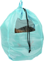 Тюркоазена торбичка с мрежест прозорец позволява лесно пренасяне и съхранение на въжето след игра.