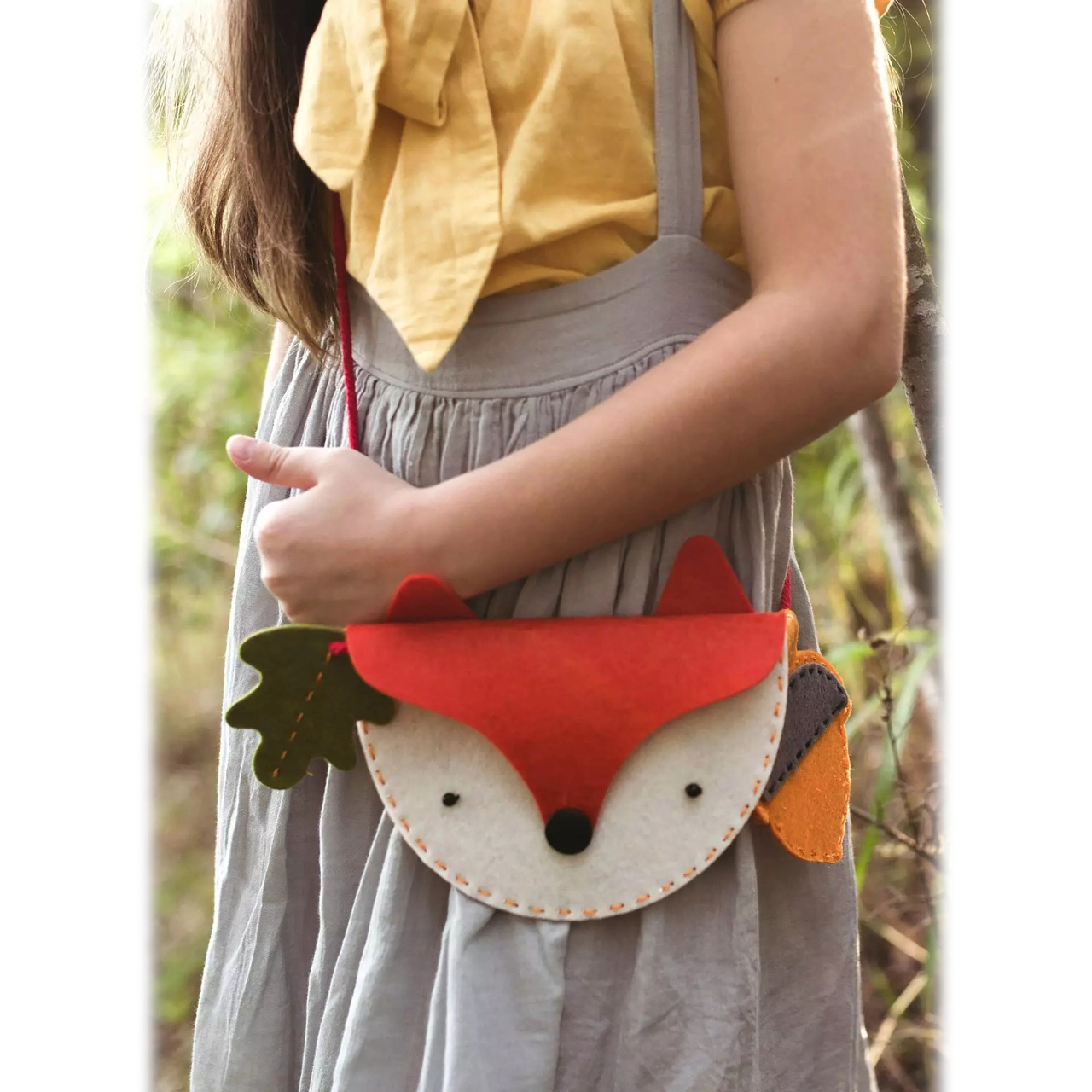 Създайте оригинална детска чантичка през рамо във формата на лисича главичка и съчетано мини портмоне с цип във формата на жълъд.