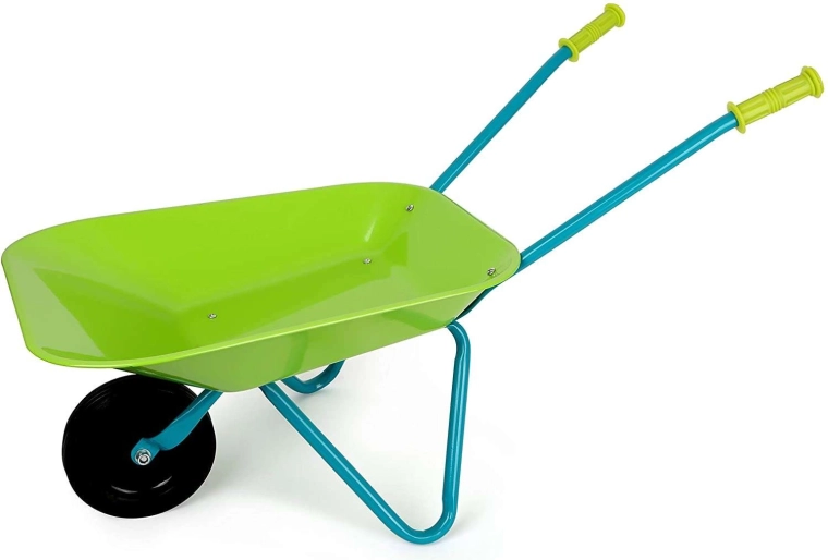 Този голям детски градинарски комплект SMALL FOOT предлага всичко необходимо на малкия градинар: стабилна количка, лопата, гребло, гребло за листа, малко гребло, лопатка и защитни ръкавици. Повечето части са от метал, което ги прави здрави и издръжливи, но същевременно леки и лесни за управление за детски ръце.