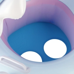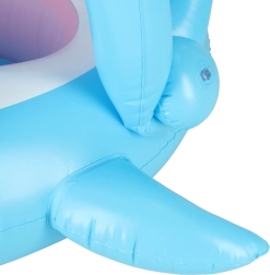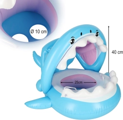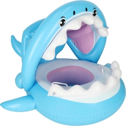 Надуваемото детско столче за вода с весел дизайн на акула е чудесно за първи запознанства с водата в басейн, река или езеро. Сваляемият балдахин предпазва от слънце, докато седалката с отвори за крачетата държи детето стабилно и удобно.