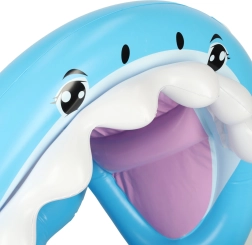Очарователният надуваем понтон във форма на акула превръща всяко къпане в приключение. Благодарение на сенчестия балдахин, удобната седалка с отвори за крачетата и практичните дръжки вашият малък мореплавател ще се радва на водните забавления безопасно и комфортно. Здравото PVC издържа и на сезон, пълен със забавления. Максимално натоварване 23 кг.