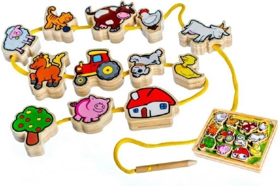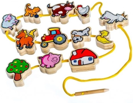 Тази дървена нанизвачка е идеален помощник за най-малките. Благодарение на нея децата се научават да разпознават традиционни чешки животни и техните малки. Забавните дейности, свързани с нанизването, насърчават разказването на истории и учат децата не само на търпение, но и на разпознаване на цветовете.