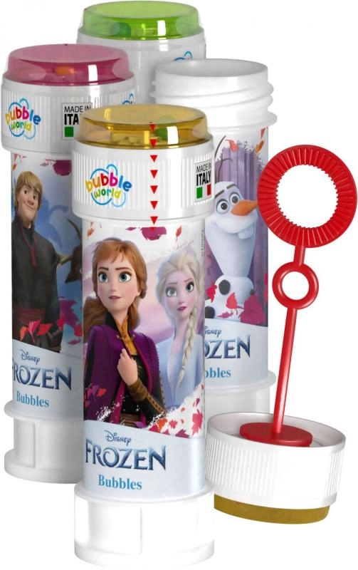 Разсмеете децата с магията на мехурчетата със сапунени мехури с лиценз FROZEN (Замръзналото кралство). Благодарение на обема от 60 ml и вграденото духалце в капачката можете да духате мехури винаги и навсякъде. Цветната капачка също крие малка игра, която забавлява по време на чакане.