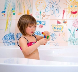 Открийте безкрайните възможности за творчество с пастелите за баня. Децата могат да рисуват директно върху ваната или плочките и да създават удивителни произведения по време на къпане. Родителите могат да бъдат спокойни – всички рисунки лесно се отмиват и пастелите са напълно безопасни.