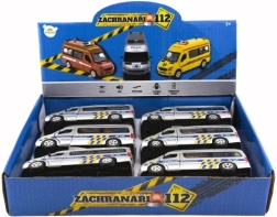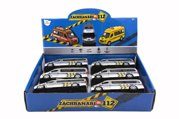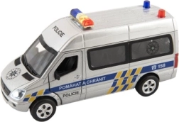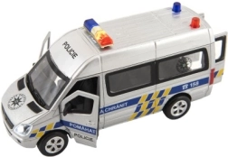 Здрава полицейска количка от метал с пластмасови елементи ще зарадва всички малки пазители на реда. Предлага светлинни и звукови ефекти, механизъм на обратно навиване за бърз старт, отварящи се врати и се доставя с батерии в комплекта.