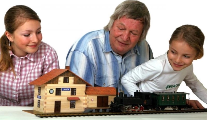 Потопете се в света на моделирането със комплект, който включва всичко необходимо за създаване на детайлна железопътна гара в мащаб 1:45. Благодарение на дървените летвички с напречно сечение 9×9 mm, картонените изрязани елементи за прозорци и врати и други компоненти ще изработите автентични елементи на пейзажа.