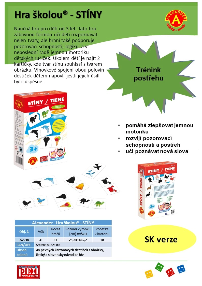 Открийте забавна образователна игра за най-малките, която развива комбинативни умения, наблюдателност и съобразителност. Съберете 24 двойки от сенки и цветни изображения на животни, музикални инструменти и предмети от ежедневието. Идеална за деца от 3 години, игриво подпомага логиката и фината моторика.