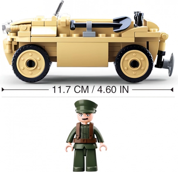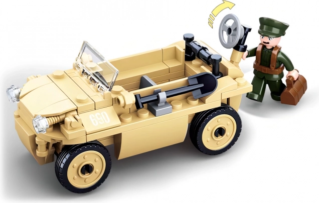 Потопете се в света на творческото забавление с този детайлен конструктор Sluban, който представя реплики на немски военни превозни средства от Втората световна война. Комплектът съдържа 106 части и оригинална фигурка с въртящи се и подвижни елементи, позволяващи игра с допълнителни аксесоари.