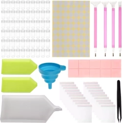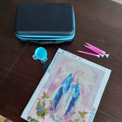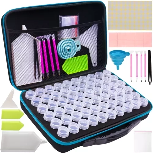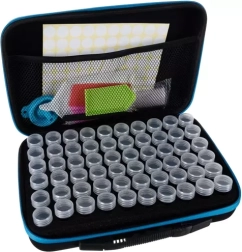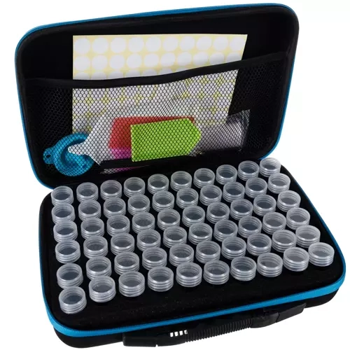 Този практичен комплект улеснява всеки любител на диамантеното рисуване както в организацията, така и в самото творчество. Всичко е надеждно съхранено в твърд, устойчив калъф със цип, включително подредени бурканчета в пенеста вложка и мрежест джоб за принадлежности. Благодарение на това решение имате всички камъчета и инструменти винаги под ръка и перфектно сортирани.