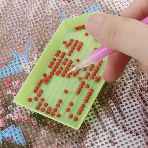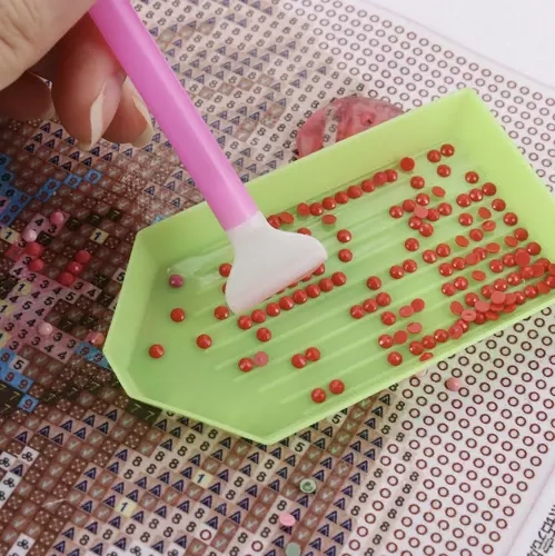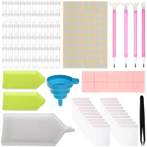 За комфортна работа са включени 4 апликатора с различни размери, прецизна пинсета, 3 таванчета за сортиране и силиконова сгъваема фуния за лесно пресипване на камъчета без безпорядък. Восъчните квадратчета осигуряват сигурно поемане на камъчетата, а изравняващата шпатула помага за идеално равен резултат.