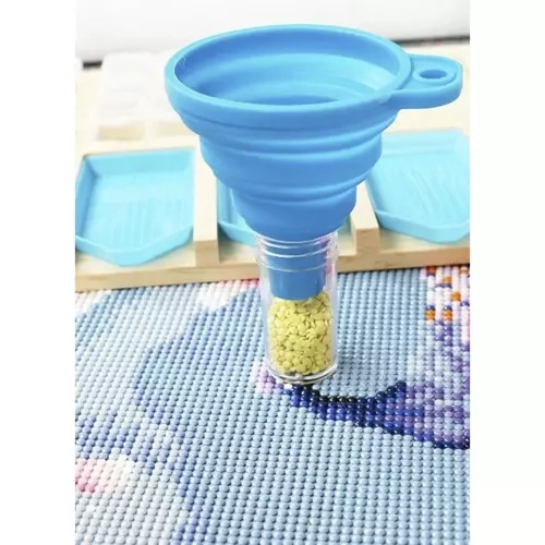 Силиконовата сгъваема фуния и таванчетата за сортиране позволяват удобно пресипване без разсипване – идеално за дребни камъчета и мъниста.
