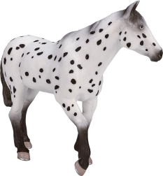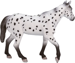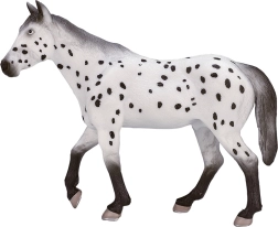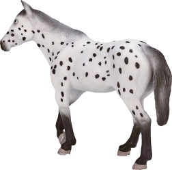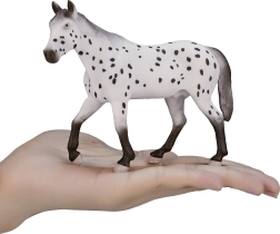 Перфектно изработената пластмасова фигурка, представяща жребец Апалуза, ще впечатли не само децата, но и колекционерите на реалистични модели. Благодарение на вярните детайли и естественото оцветяване предоставя автентично изживяване. Моделът е разработен в сътрудничество с общността на колекционерите и е сертифициран с лиценз от уважавани документалисти, което гарантира неговото качество и вярност към оригинала.